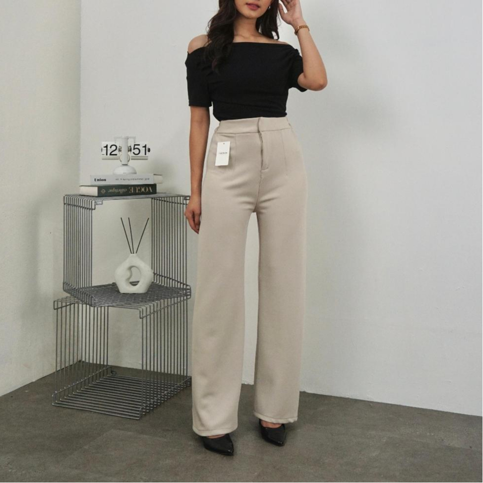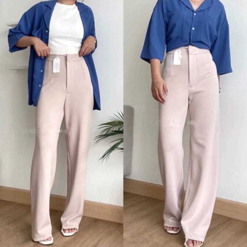 Loose Pants Scuba 399 Celana Anti Kusut Celana Kulot Wanita Polyester Highwaist By Edbas.Store01