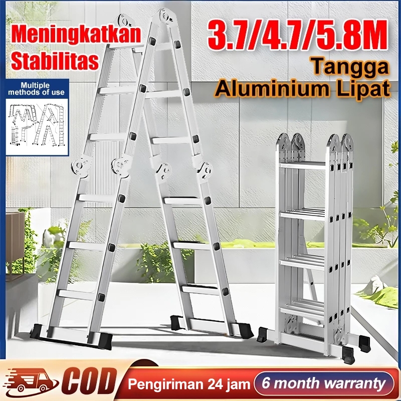 Tangga Aluminium Lipat Empat 3.7M/4.7M/5.8M Teleskopik Tangga Teleskopik Multifungsi Tangga Lipat Aluminium Termurah Tan