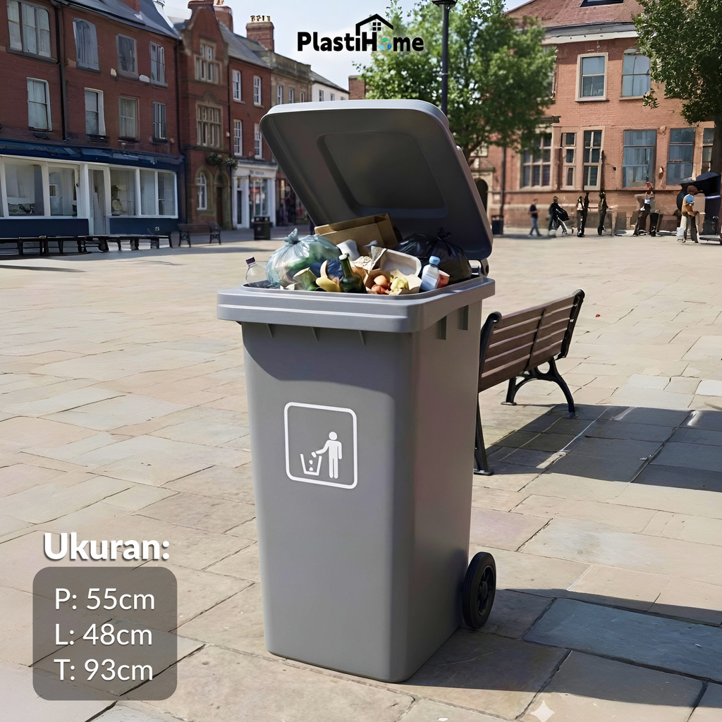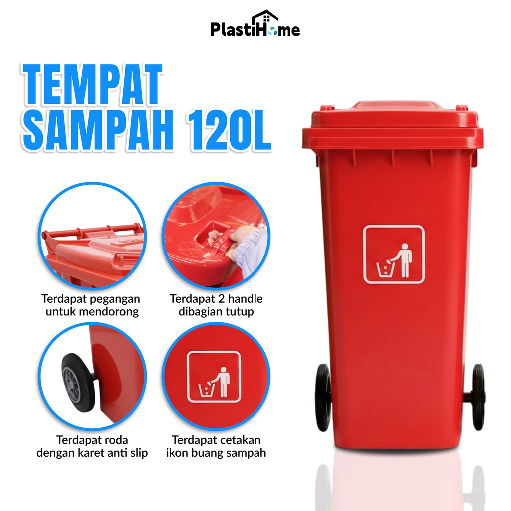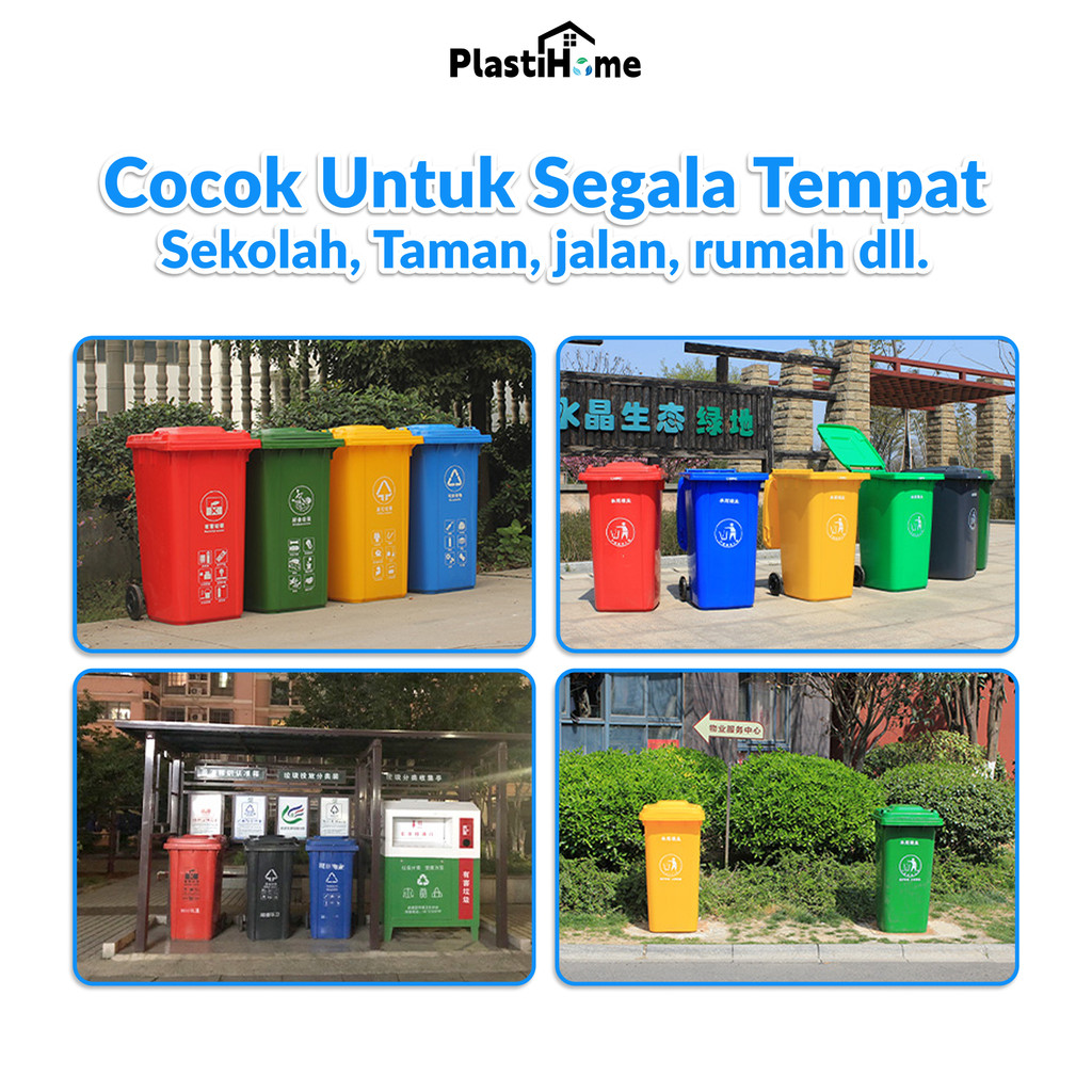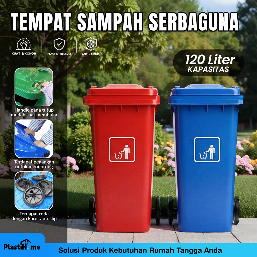 Tong Sampah Plastik 120L Besar Kuat Outdoor – Tempat Sampah Lingkungan 4 Warna untuk Sekolah, Pabrik & Perumahan