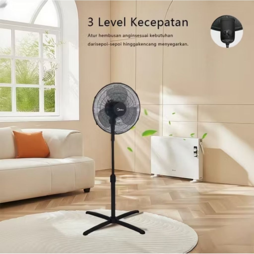 MIDEA MFS160M0BDW / BDK Kipas Angin Stand Fan 16 Inch 40 Watt . Baru & Bergaransi
