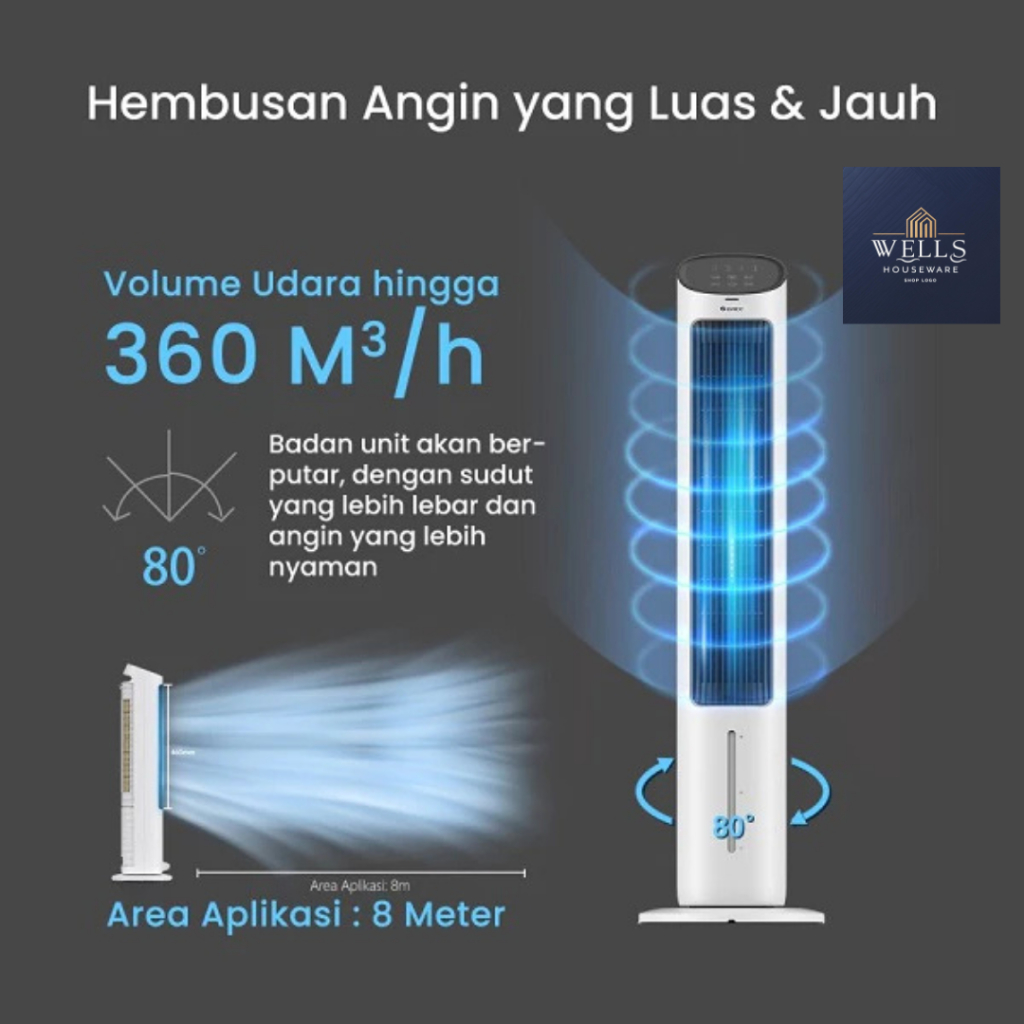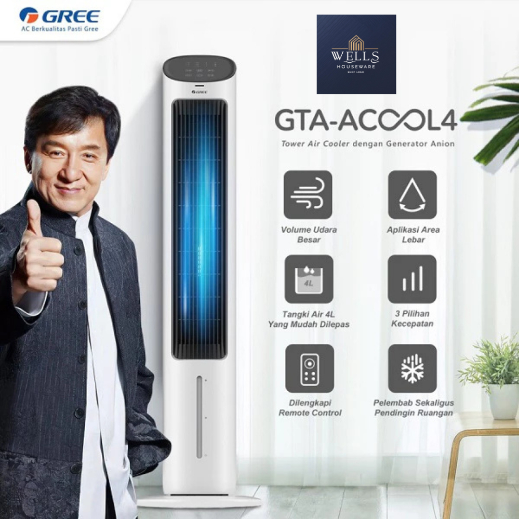 Wells Houseware - GREE Tower Fan Air Cooler with Generator Anion - GTA-ACOOL4 - Humidifier - Tangki 4L