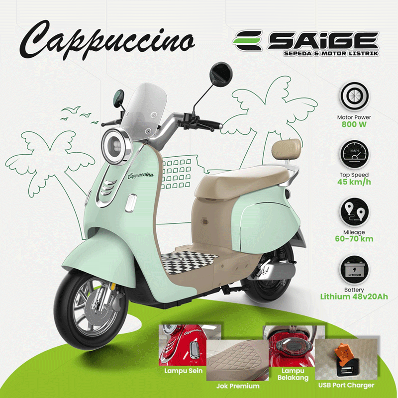 [Star] sepeda listrik saige cappuccino lithium power 800watt anti air sepedah listrik dewasa sepeda besar