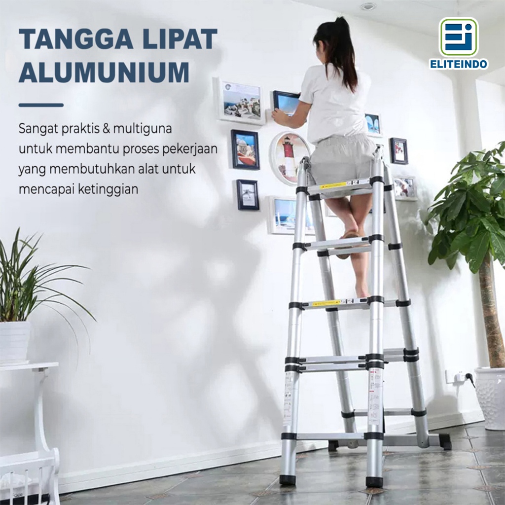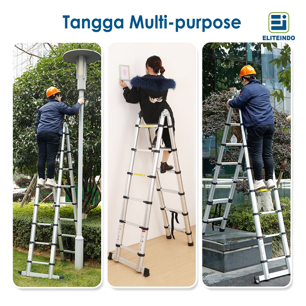 ELITEINDO Tangga Lipat Aluminium Teleskopik Portable 3.8M/4.4M/5 Meter Telescopic Ladder Multifungsi