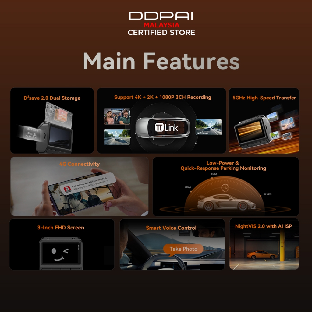 DDPAI Z60 Dual 4K Ultra HD GPS 3 Channel Front 3840& Rear 1920 Super Capacitor Dash Cam with 4G Connectivity Night Visio