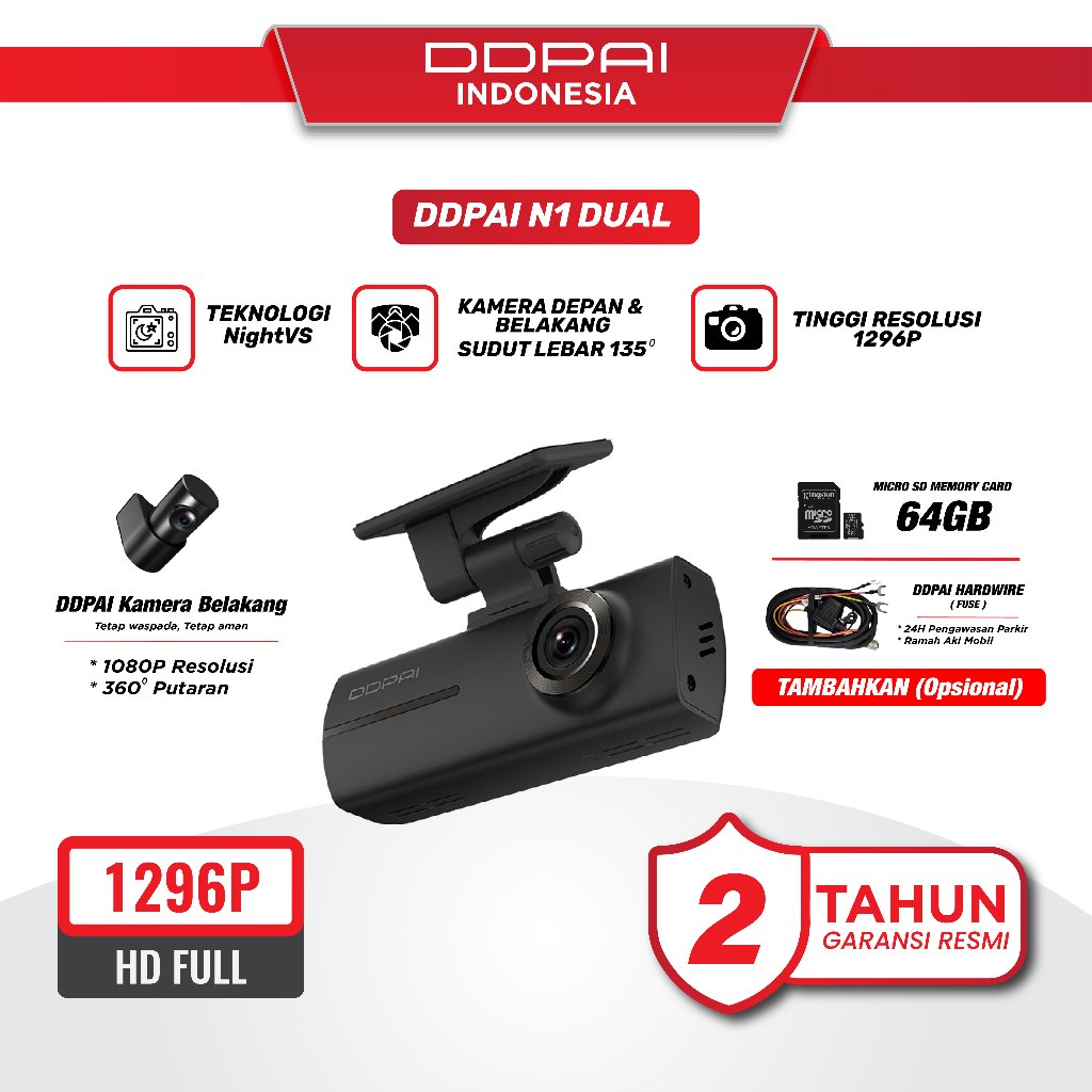 DDPAI N1 Dual Front & Rear Recording NightVIS 1296P Dash Cam