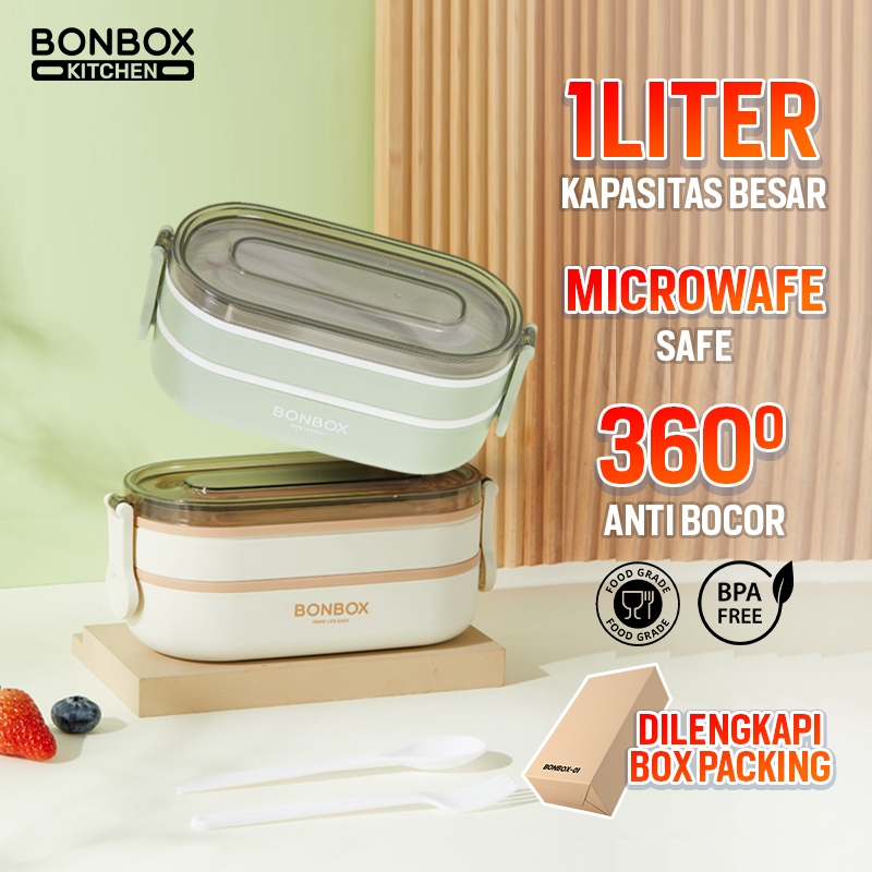 [box protection BONBOX Lunch Box PP 1000ML - 2 LAPIS SEKAT ANTI BAU Material Food Grade BPA Free AMAN Microwave Warna