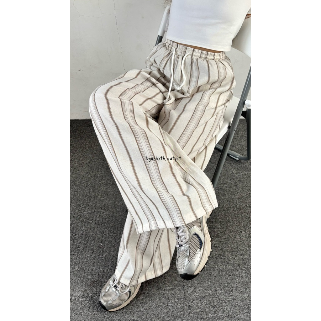 BYACLOTH Everyday Pants LINEN Celana Panjang Wanita Baggy Kantor Kuliah Motif Garis Kulot Pinstripe Murah Gratis Ongkir