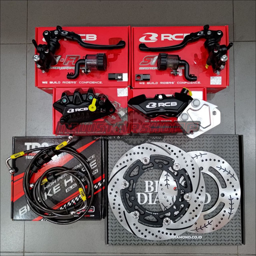 Paketan Pengereman Nmax 4P 2P Master Rem RCB S1 FL 17mm / 14mm kanan kiri Radial + Kaliper Depan RCB R1 4 piston Belakan