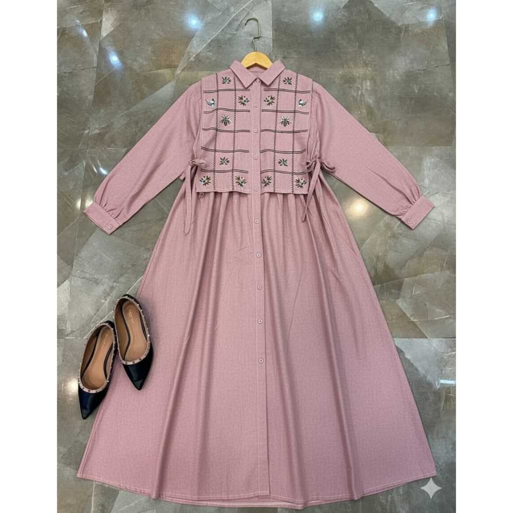 Afifah Dress Gamis Kondangan Remaja Dewasa Kekinian Gamis Mewah Bahan Polo Linen Mix Bordir