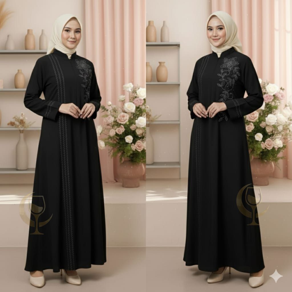 Abaya Tiara Swarovski Premium | Gamis Sabrina Anti UV | Busui Friendly – Elegan & Nyaman Dipakai Harian