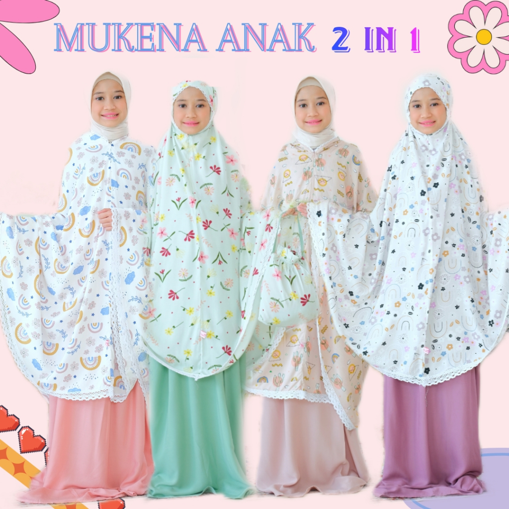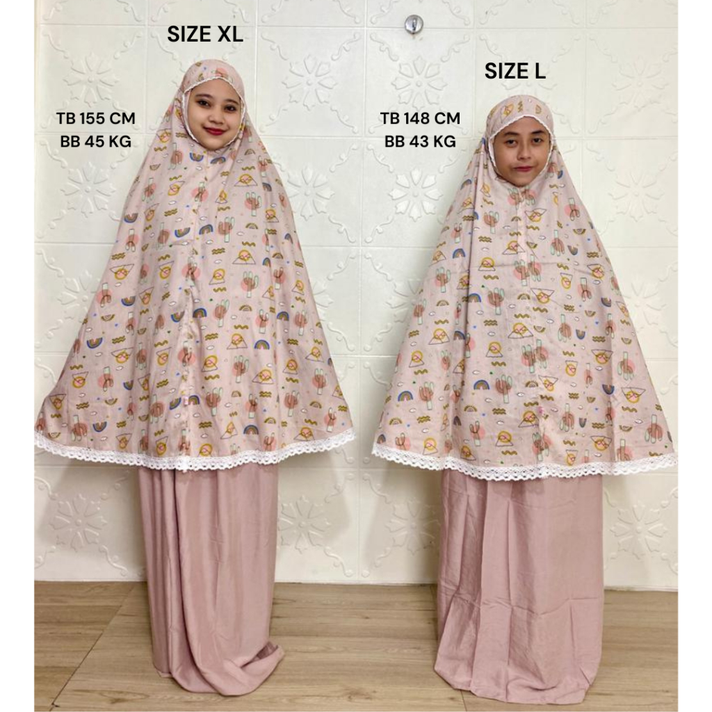 Mukena Anak Perempuan Tanggung Resleting Katun Rayon Premium Motif Bunga Lucu
