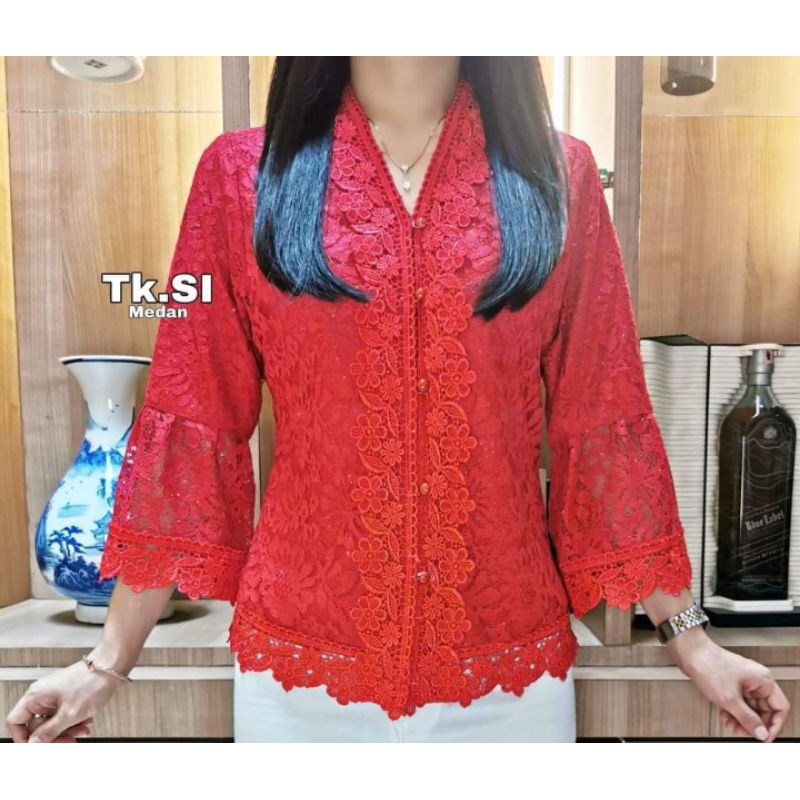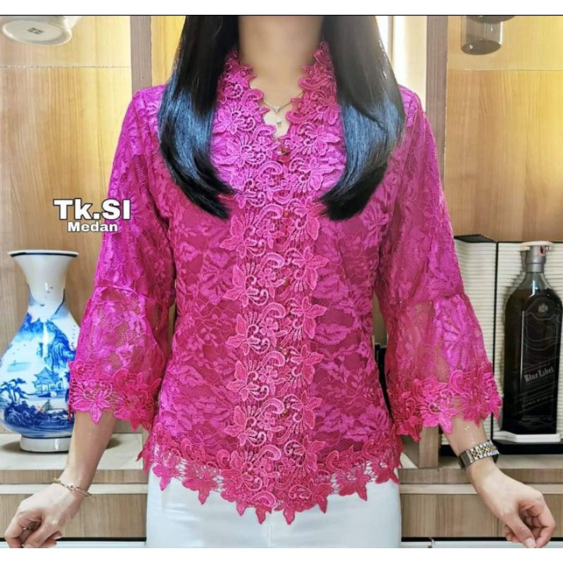 Atasan Kebaya Wanita Blouse Wanita Bahan Brokat Premium-Kebaya Kartini Modern Xl-8L -Atasan Elgahan 8096 Lengan Trompet