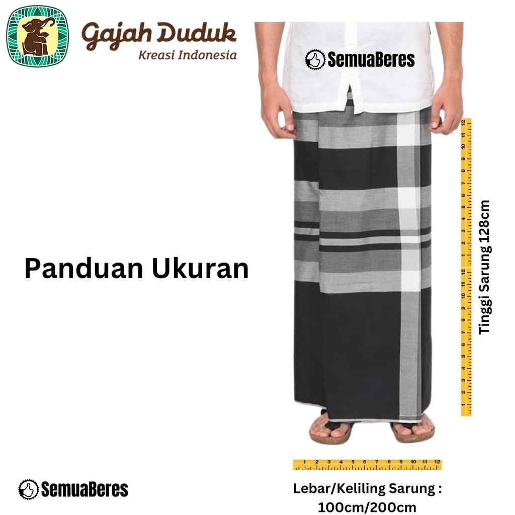 Sarung GAJAH DUDUK Black & White / Hitam & Putih - Original Kain Tenun Dewasa Pria Laki Cowo Sholat