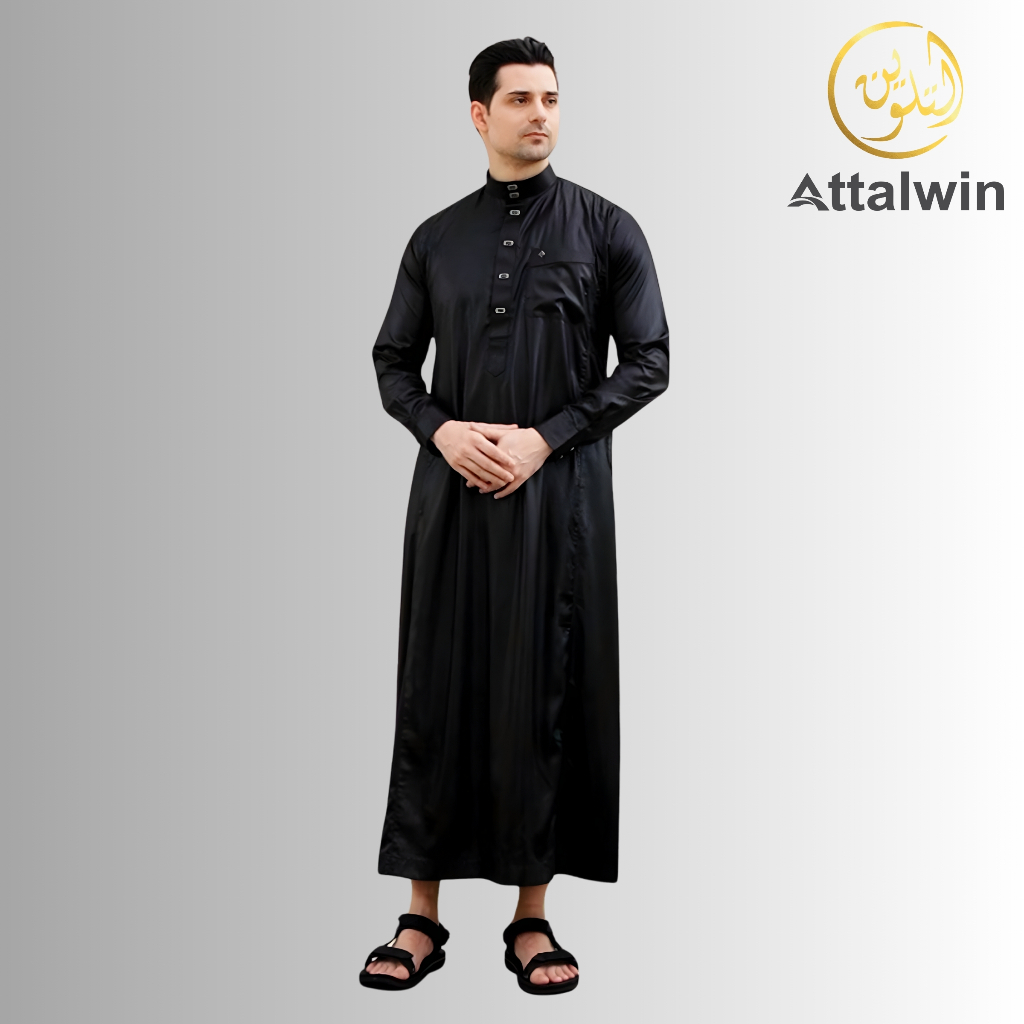 Attalwin - Koko Gamis Jubah Pria Polyester Umroh Haji Thobe Tangan Manset Jp056