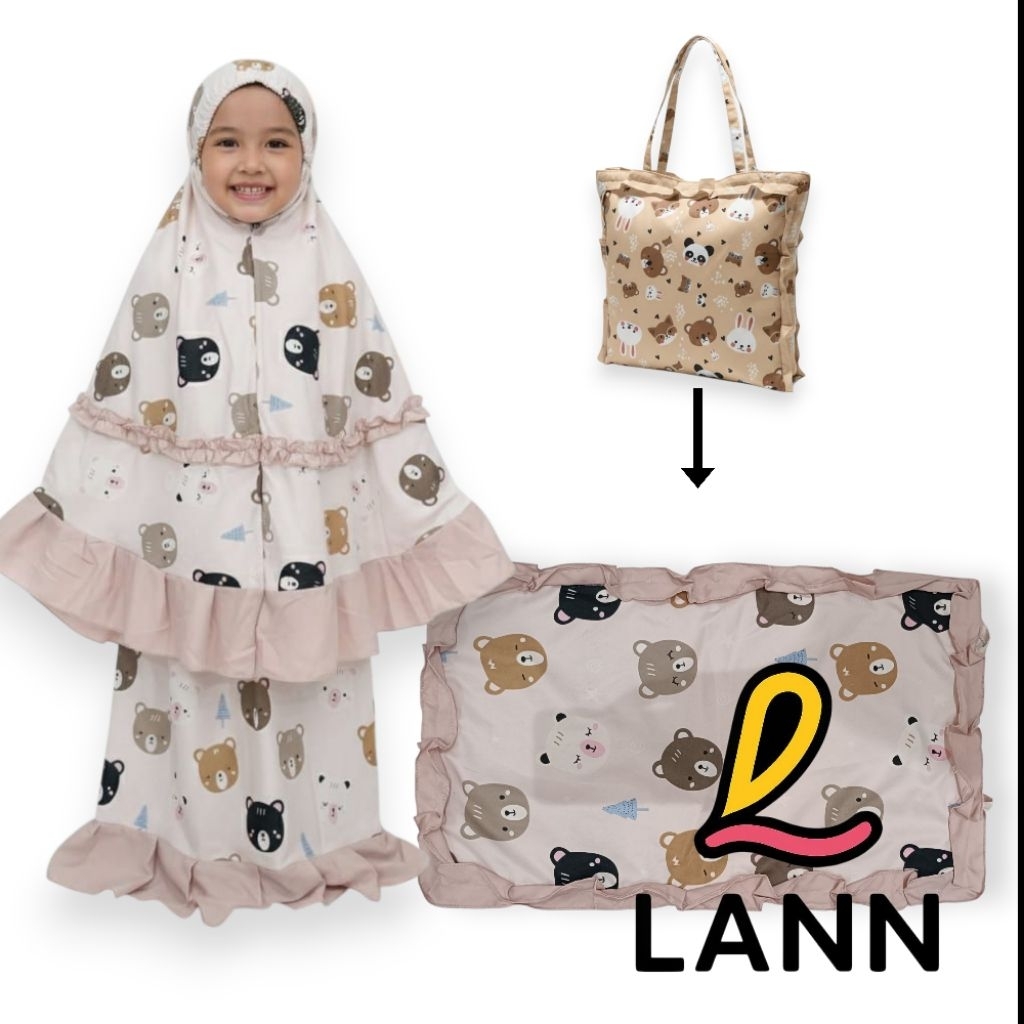 Mukena anak 3in1 motif karakter 3-9 tahun tas ransel bisa jadi sejadah bahan katun premium
