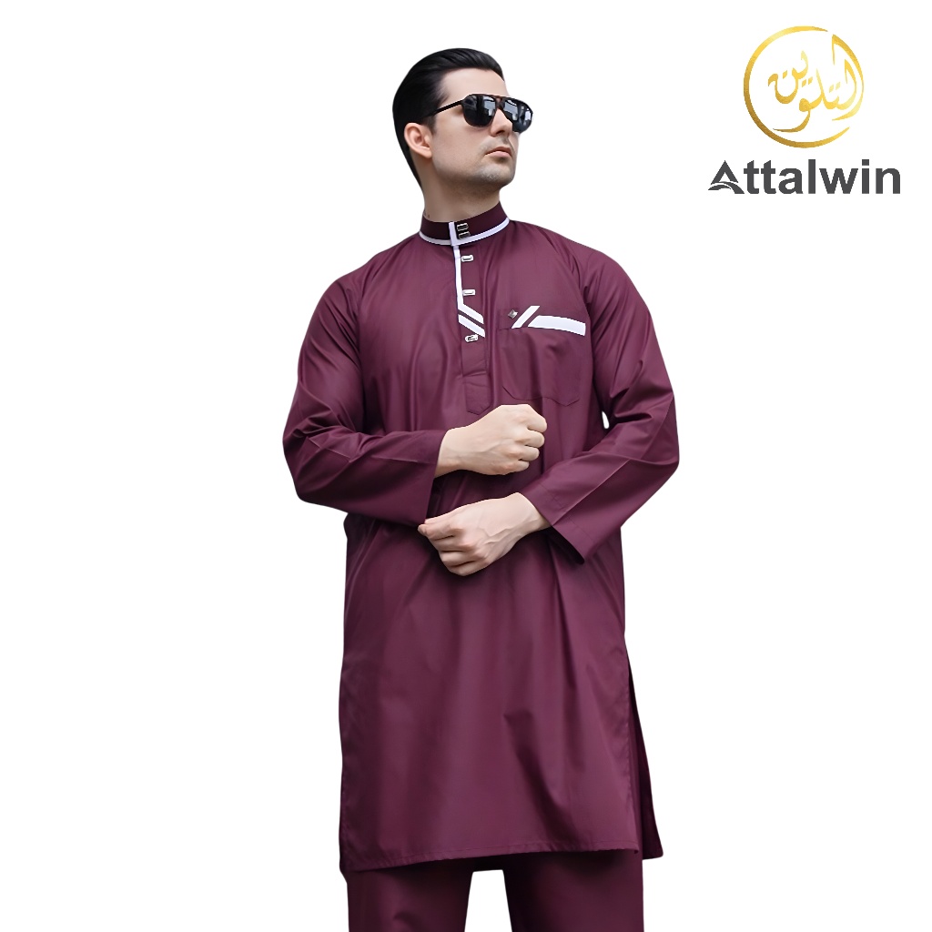 Attalwin - Koko Gamis Jubah Pria Setelan Kurtah Umroh Haji Tanpa Manset Sd040