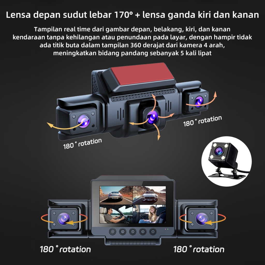 Acroder Dashcam 4 kamera T41 WiFi HD 1080P All-round Monitoring 24H Time Inframerah Night Vision