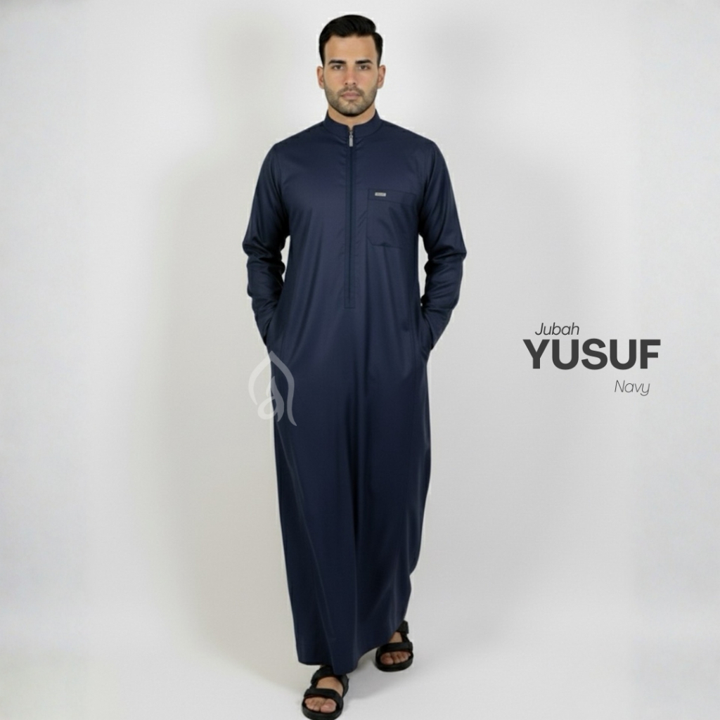 Avoholic.Id - Jubah Pria Yusup Gamis Pria Lengan Panjang Navy