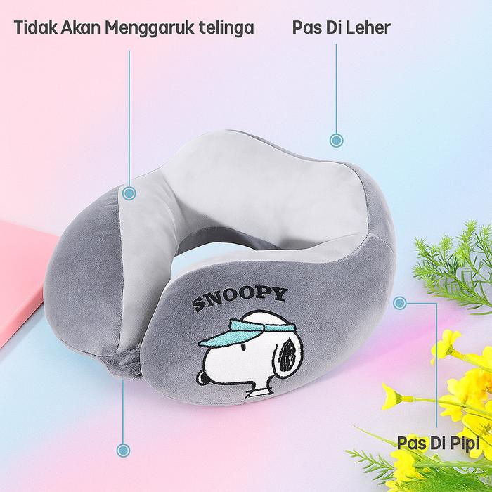 Bantal Leher Berbentuk Snoopy Tidur Siang Bantal Leher Traveling Bantal Mobil Halus Dan Lembut Car