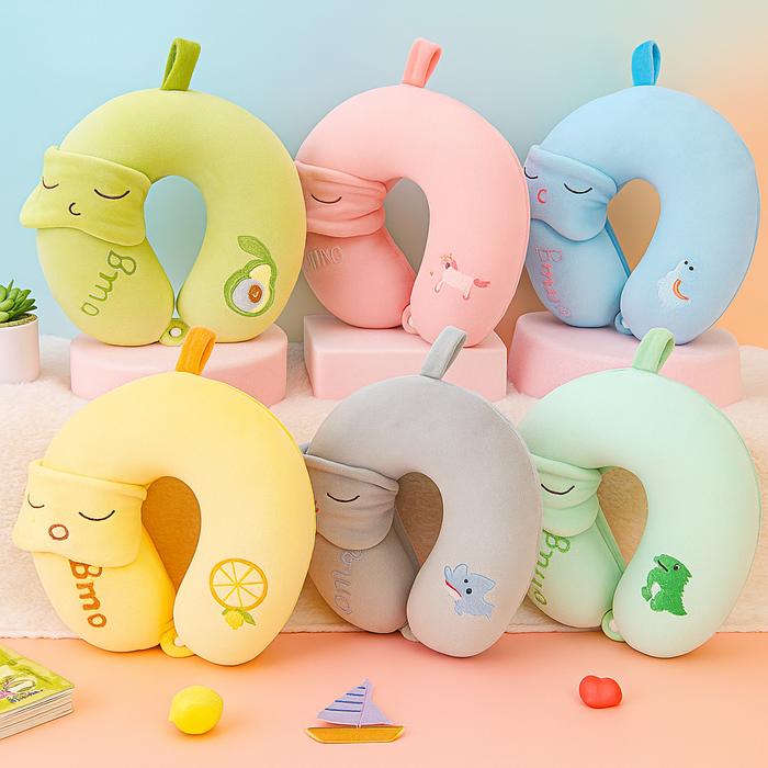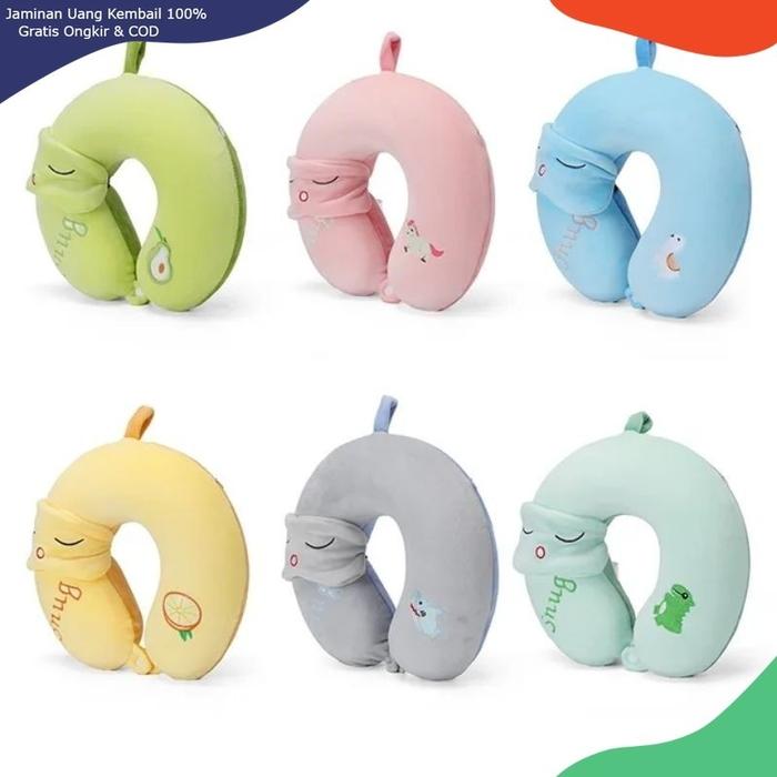 Bantal Leher Shape U Free Penutup Mata Bantal Leher Mobil Dewasa Sangat Lembut Berlable SNI Car - BIRU LOGO KUDA PUTIH