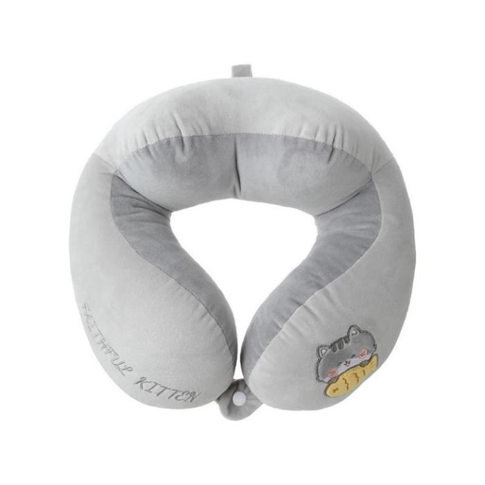 Bantal leher travelling high quality mewah cocok untuk menemani perjalanan - kitten abu abu