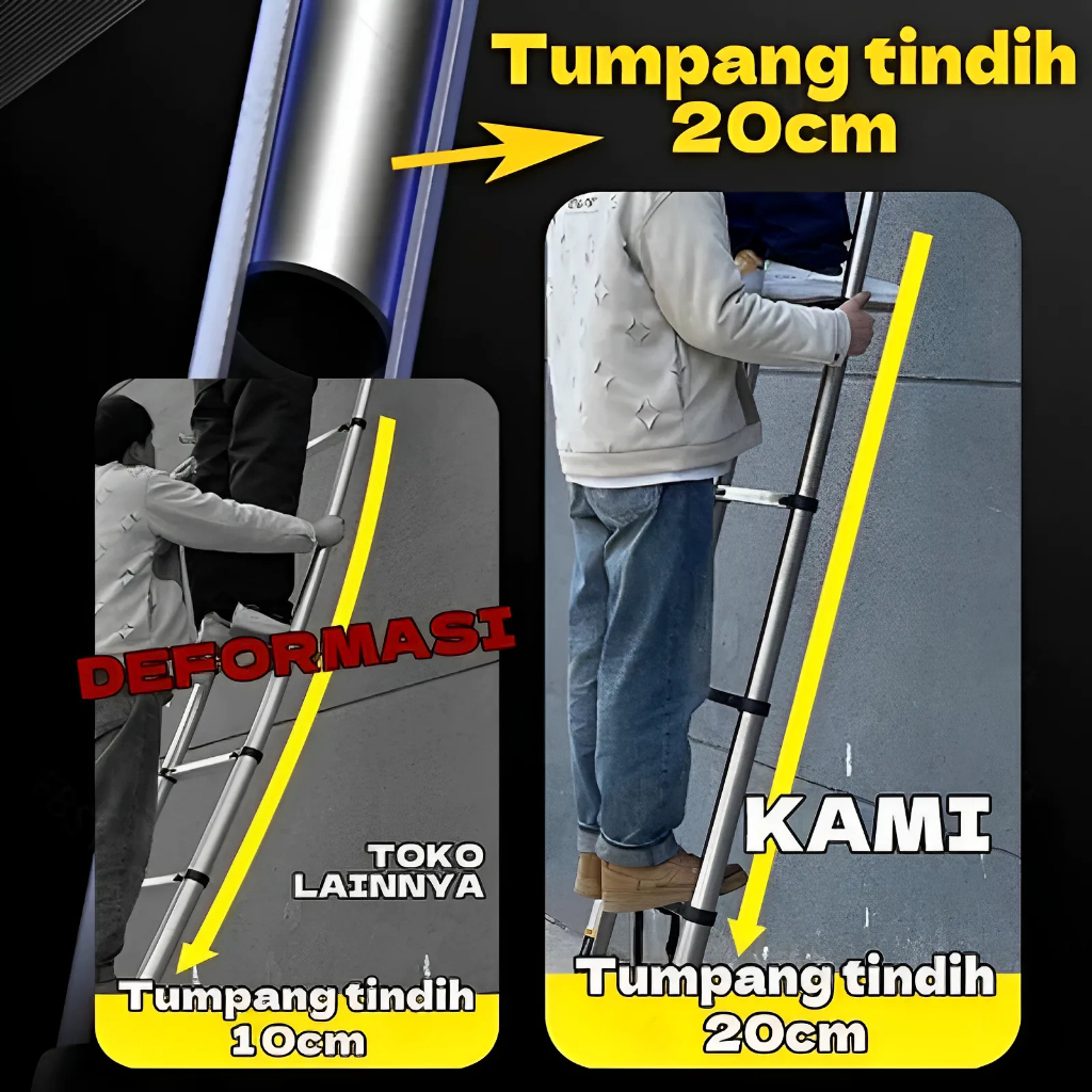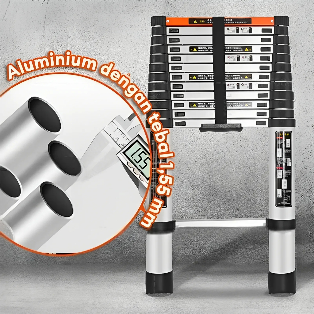 Tangga Teleskopik Lipat Aluminium Tangga Teleskopik Dikemas Secara Ketat 2.7m/3.9m/4.3m/5.1m