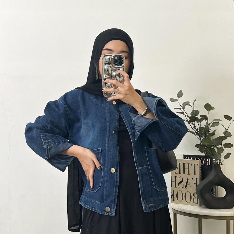 Jaket jeans Wanita Exxo Clara cardi Semi Crob Leher Shanghai Kekinian Murah Gratis Ongkir