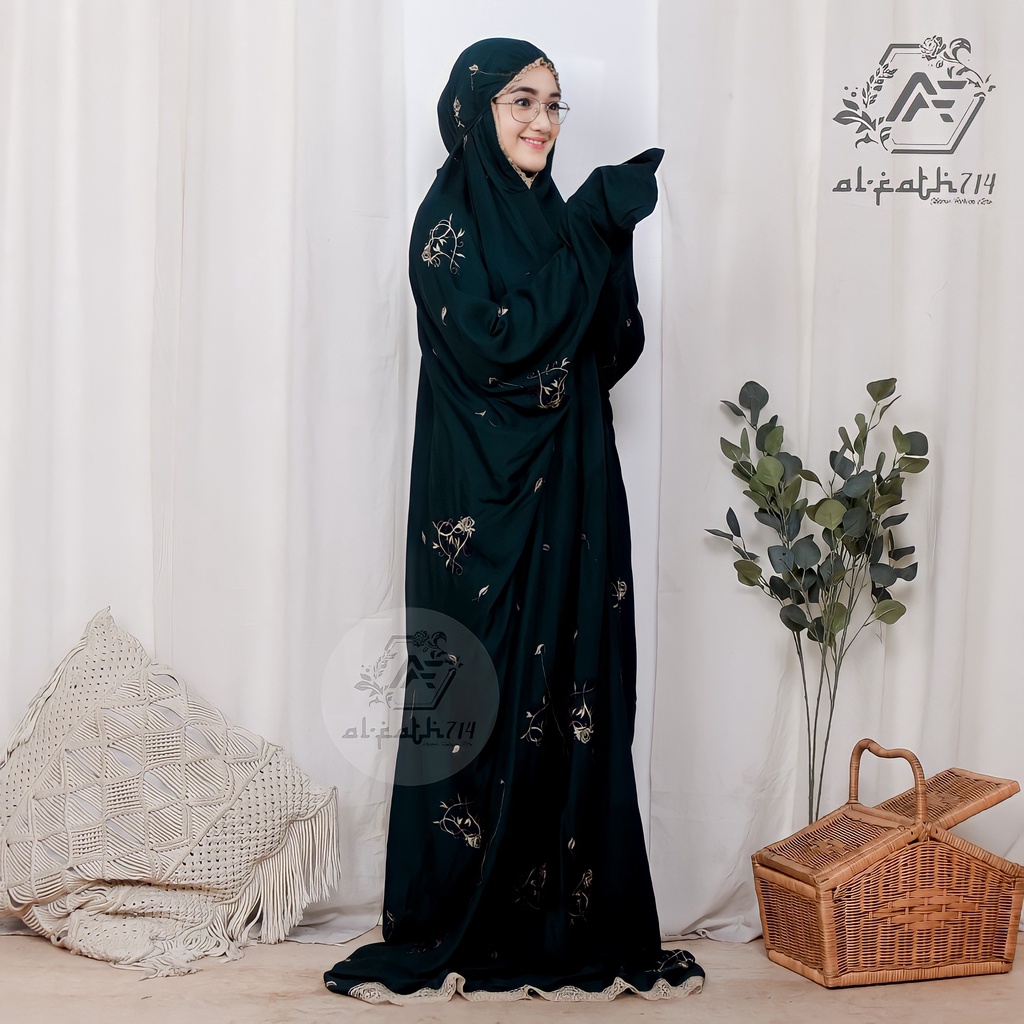 Alfath714 - Mukena Terusan Dewasa Bordir Bunga Rose Love Mukenah Lajuran Dewasa