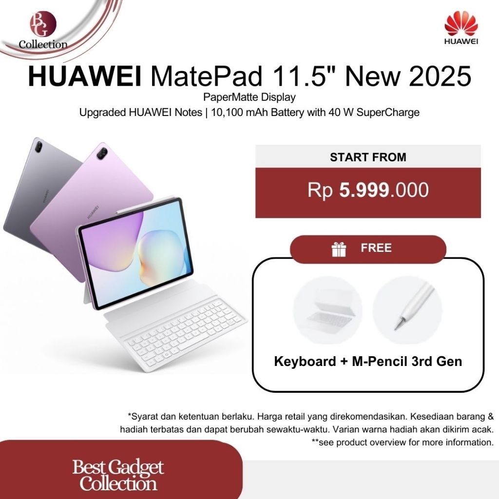 [Free Keyboard] HUAWEI MatePad 11.5 inci New 2025 PaperMatte EditionTablet | WPS Office 2.0 Tingkat PC Eksklusif | Layar Papermatte | 10,100 mAh 40W HUAWEI SuperCharge | GoPaint