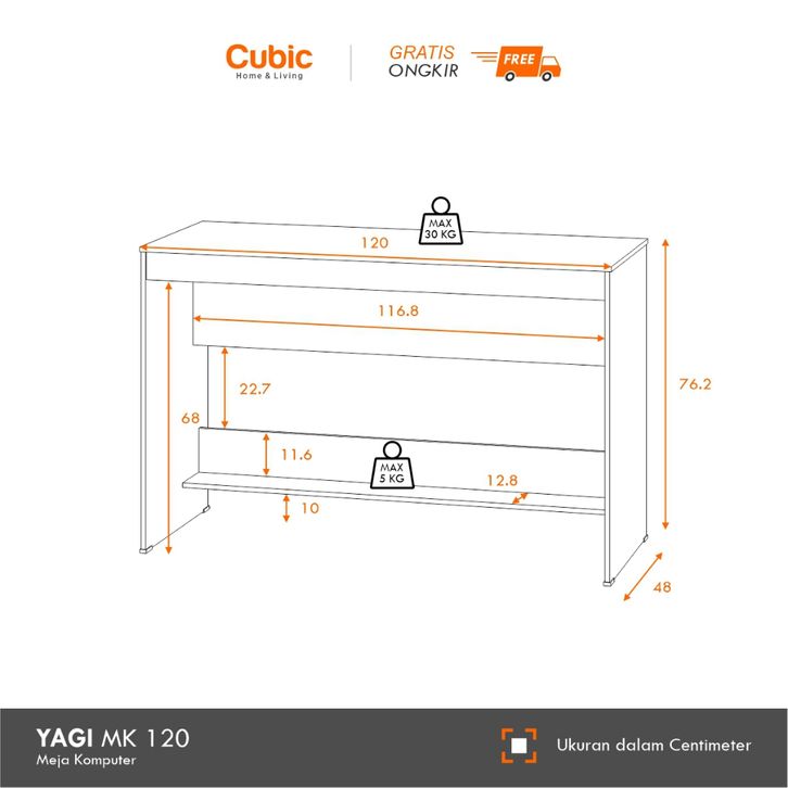 Meja Kerja Rumah / Meja Komputer Industrial Minimalis / YAGI MK 120