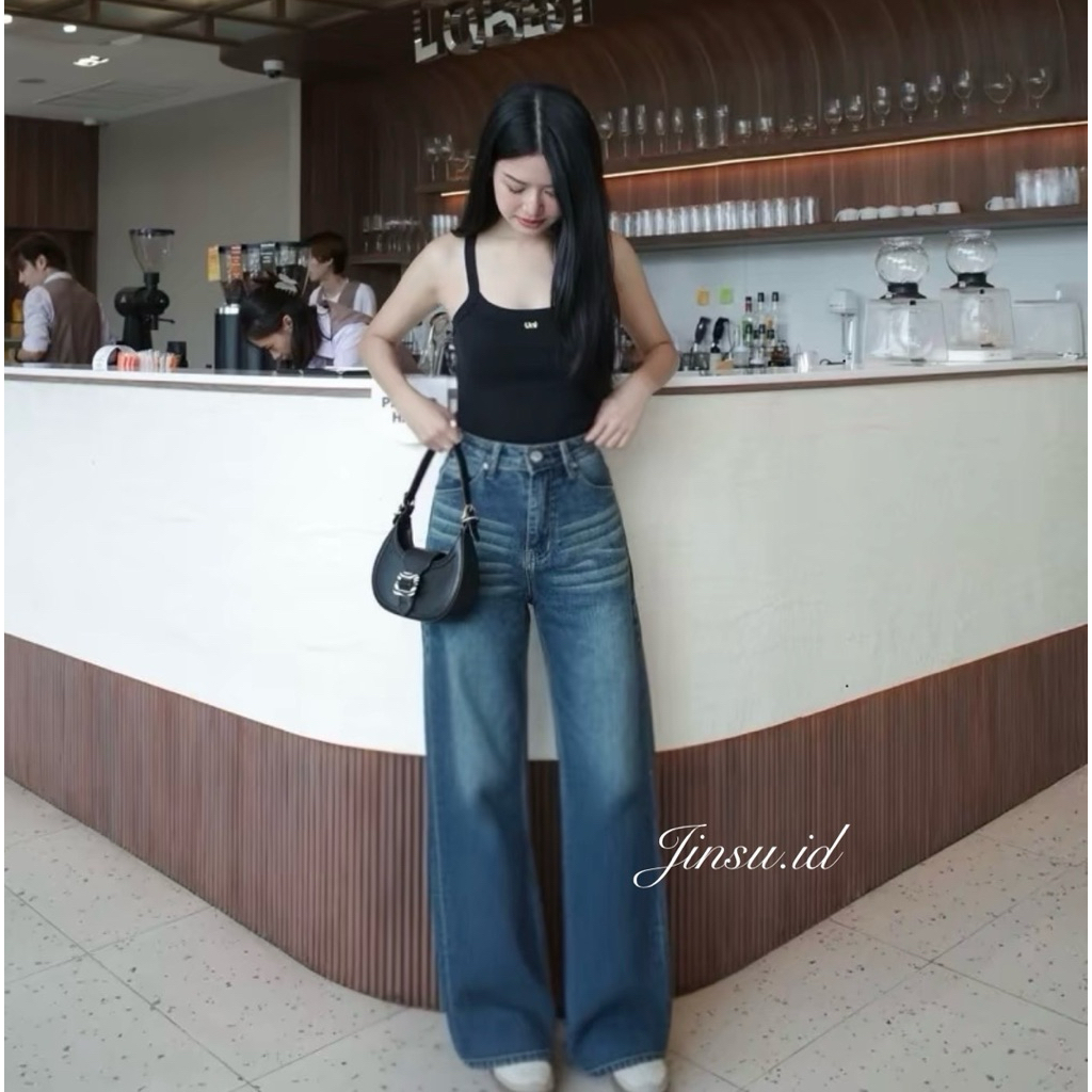 Celana Baggy Loose Retro Jeans Korean Style Gombrong Whisker Murah Gratis Ongkir