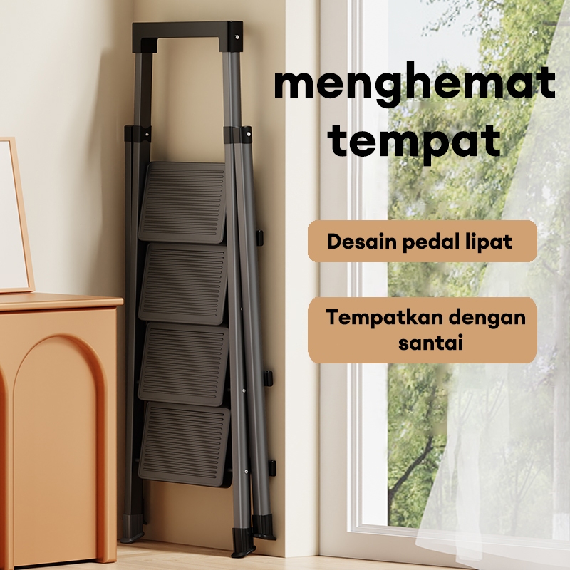 Reaim Tangga Lipat Multifungsi 3/4/5/6/7/8 Step hitam Tangga Lipat Aluminium Household Steel Ladder Tangga Besi Lipat Pr
