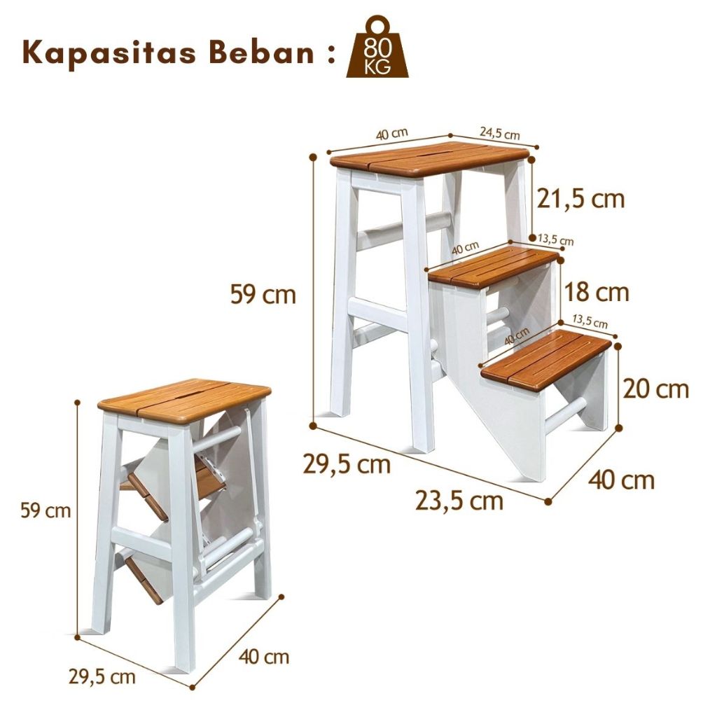 Toraya Tangga Lipat Kayu Tinggi 60 cm Tangga Lipat/ Bangku/ Tangga Lipat Estetik/ Step Chair SCH-60