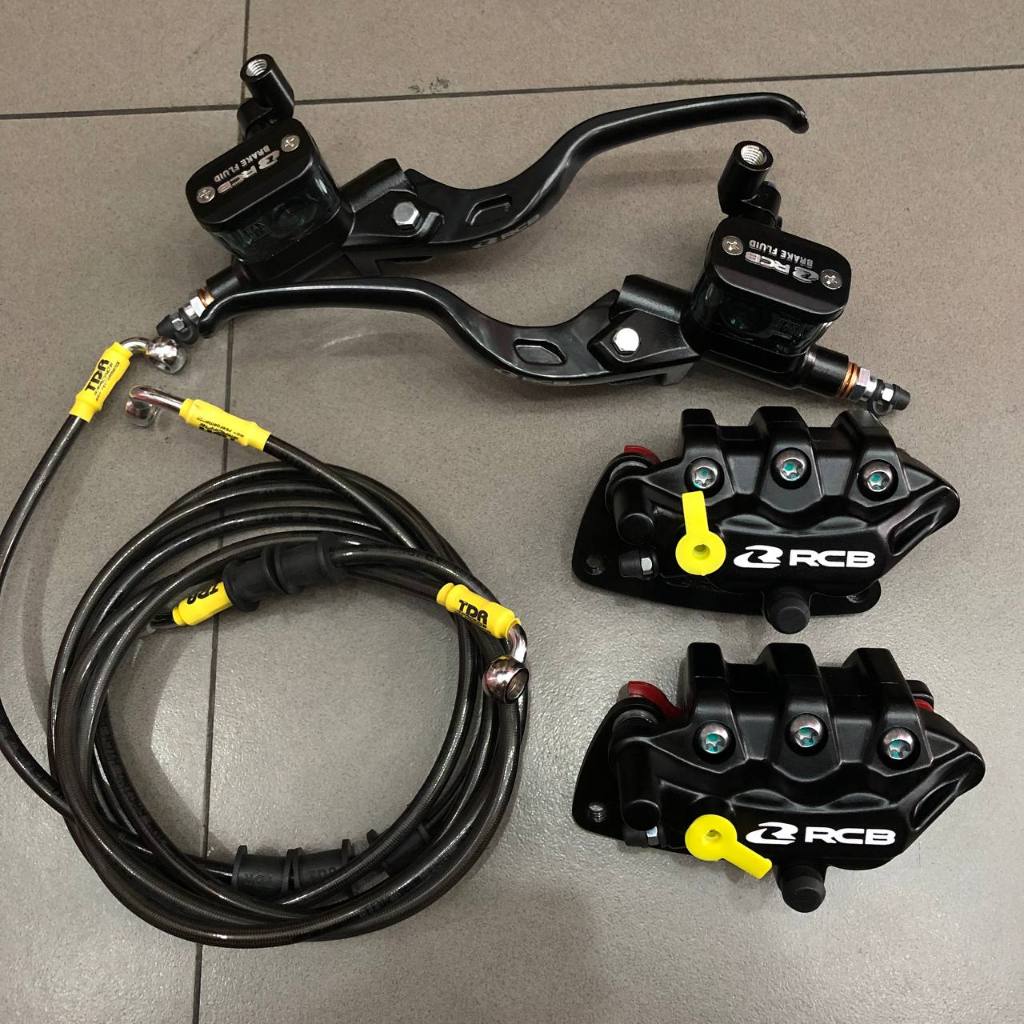 Paketan Master Rem RCB E3 14mm Set Kanan Kiri + Kaliper RCB S Series 2 Piston + Selang Rem TDR Package Black Carbon Nmax