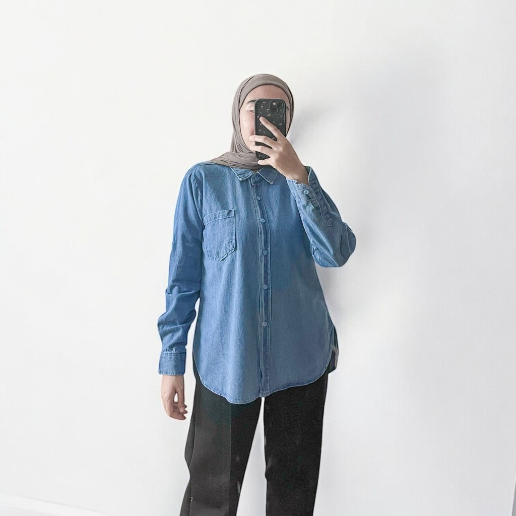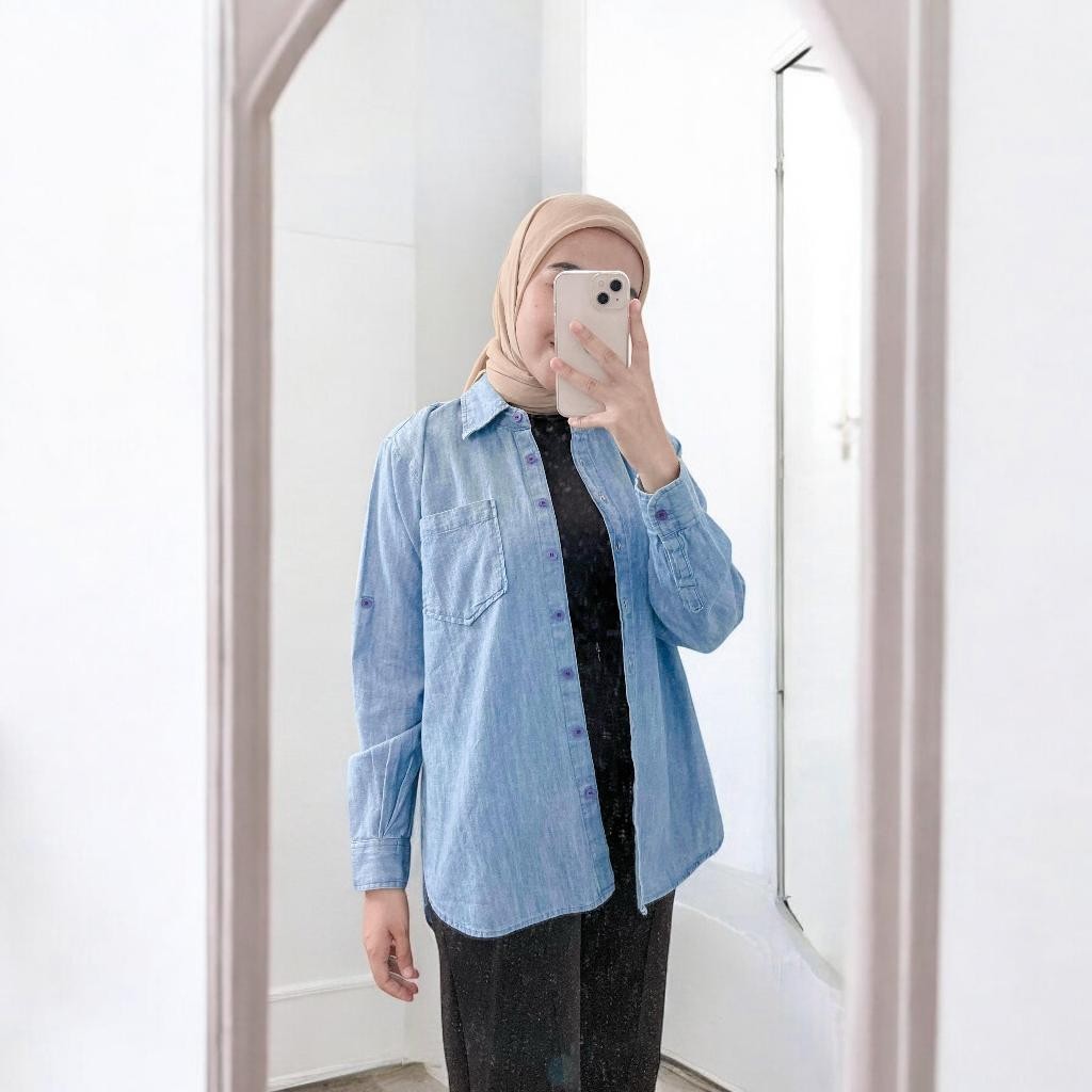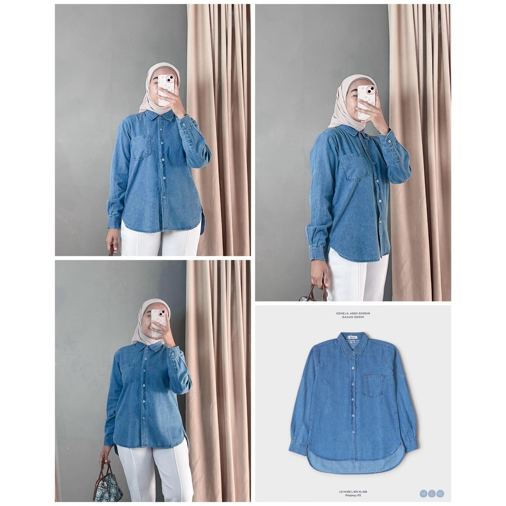 Anyostore Ab28 Atasan Kemeja Denim Wanita