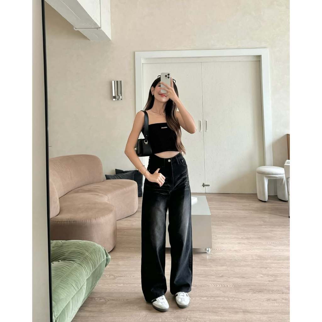 Celana jeans high waist wanita korean style Jeans baggy pants Serbaguna Kasual Hitam Retro premium Murah Gratis Ongkir
