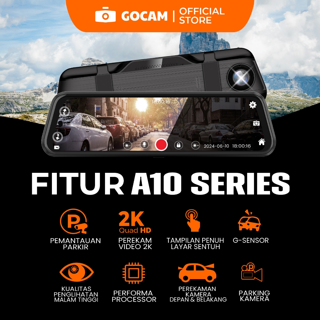 GOCAM Dash Cam Mobil Layar Sentuh A10 - WIFI Front 2K Rear 1080p IPS Night Vision Dashcam Mobil Kamera Depan Belakang