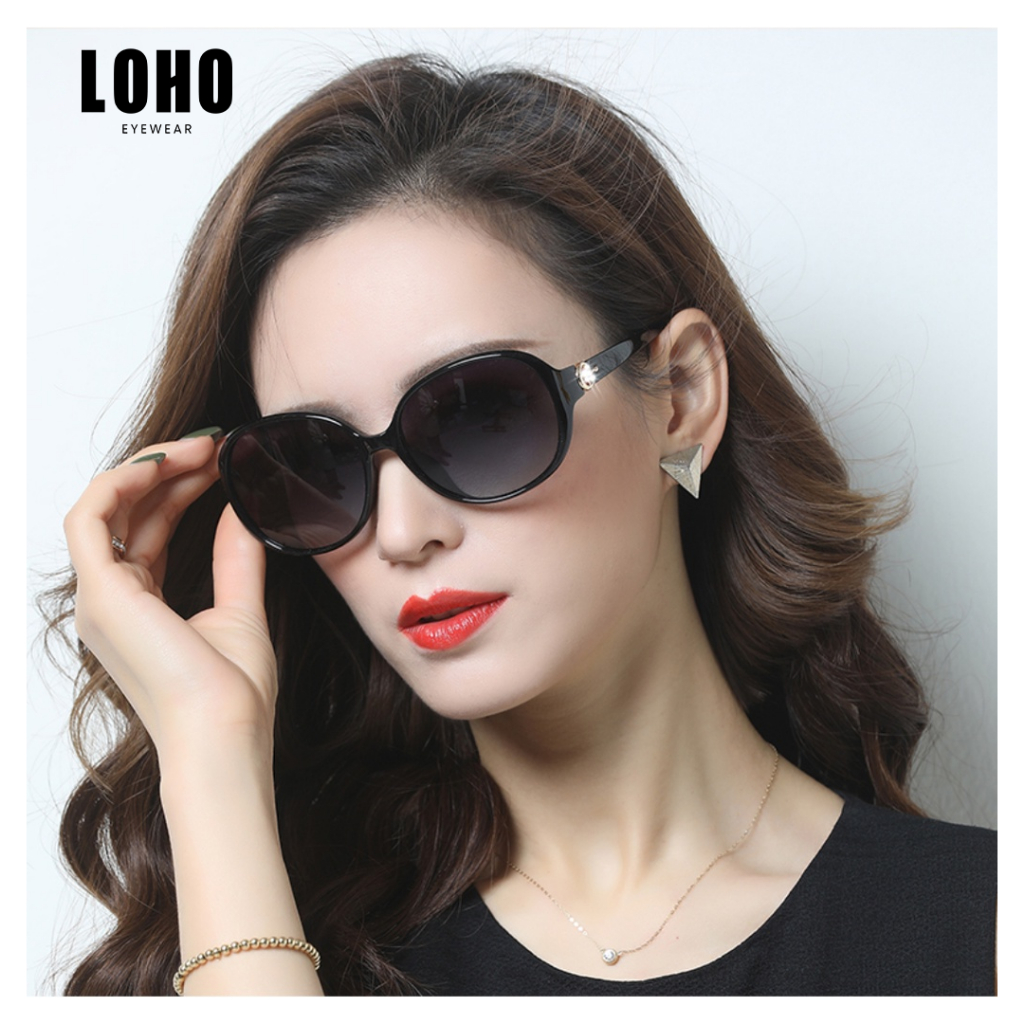LOHO Kacamata Hitam Anti Uv 400 Sunglasses Frame Bulat Besar Fashion Wanita 6004