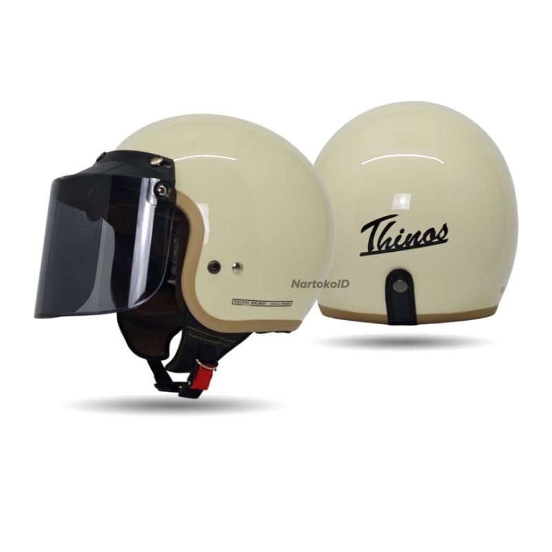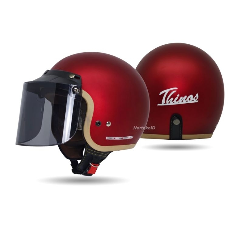 [Star] Helm Bogo Dewasa Thinos New Reborn List Coklat Cewek Cowok Full Leher SNI Flat Visor Helm Motor Pria Dan Wanita