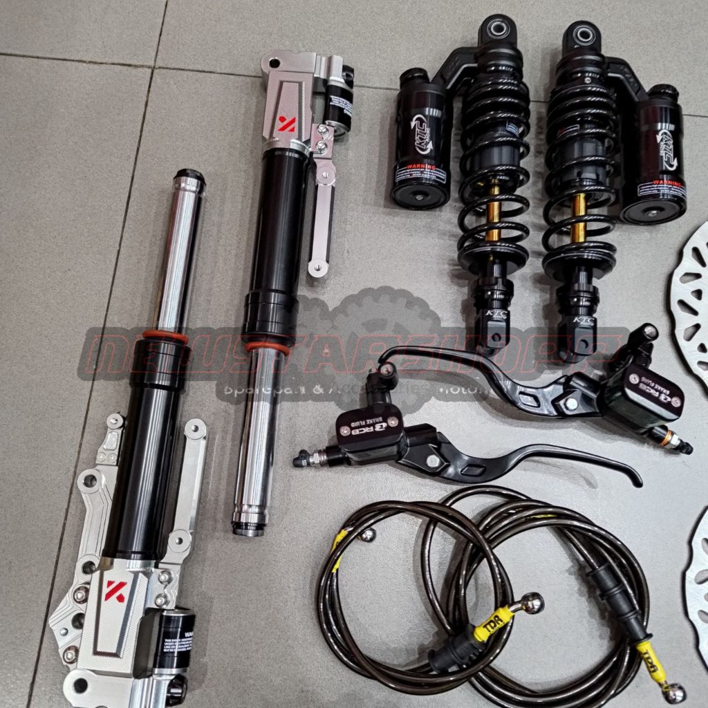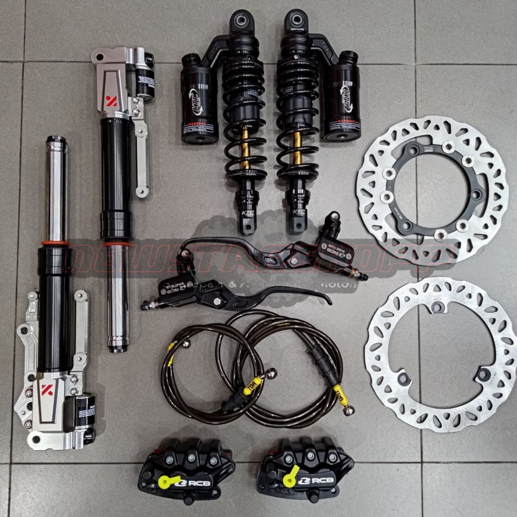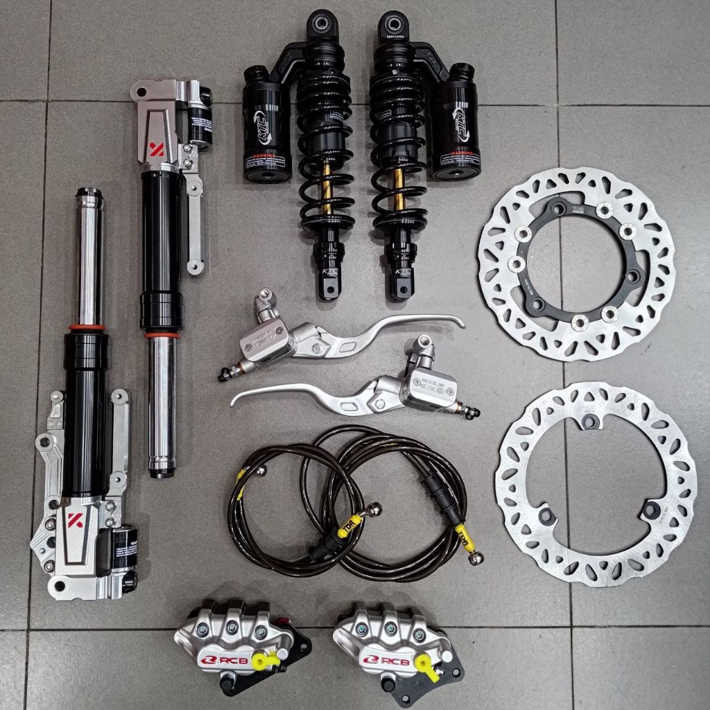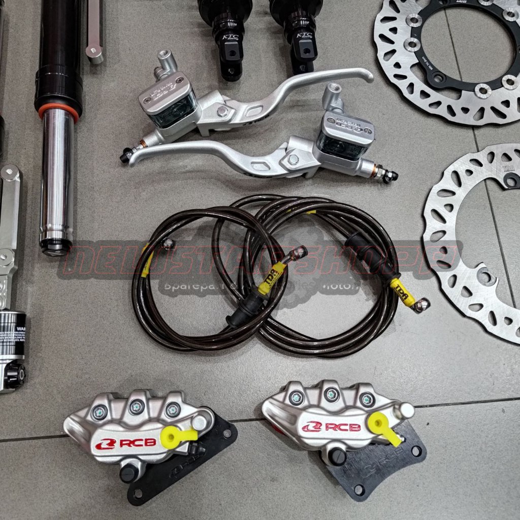 Paketan Lengkap Master rem RCB E3 14mm kotak kanan kiri + Kaliper RCB S Series 2 piston + Selang rem Carbon + Piringan F