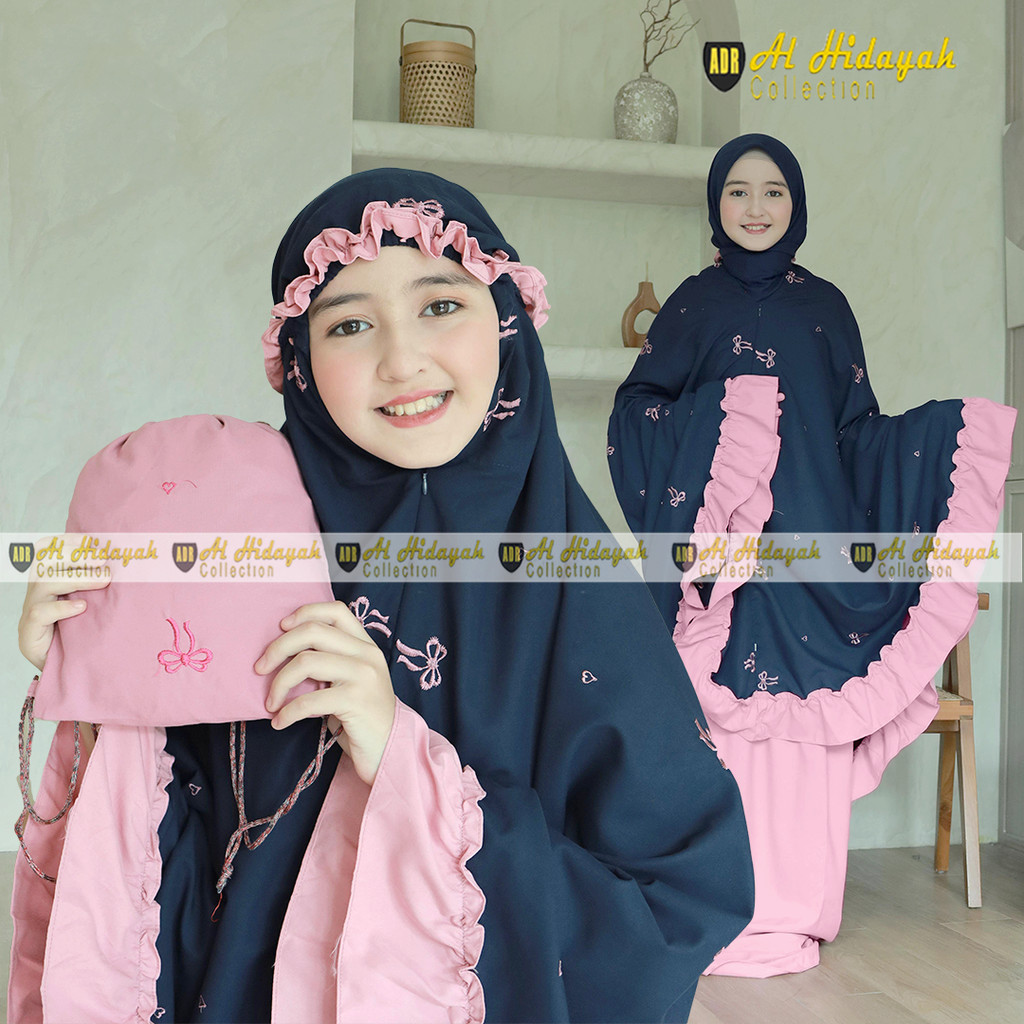 Mukena Anak Bordir Timbul Resleting Dagu 2 in 1 Katun Premium 5 6 7 8 9 10 11 12 13 14 15 Tahun Mukenah Tanggung Mewah SD SMP SMA