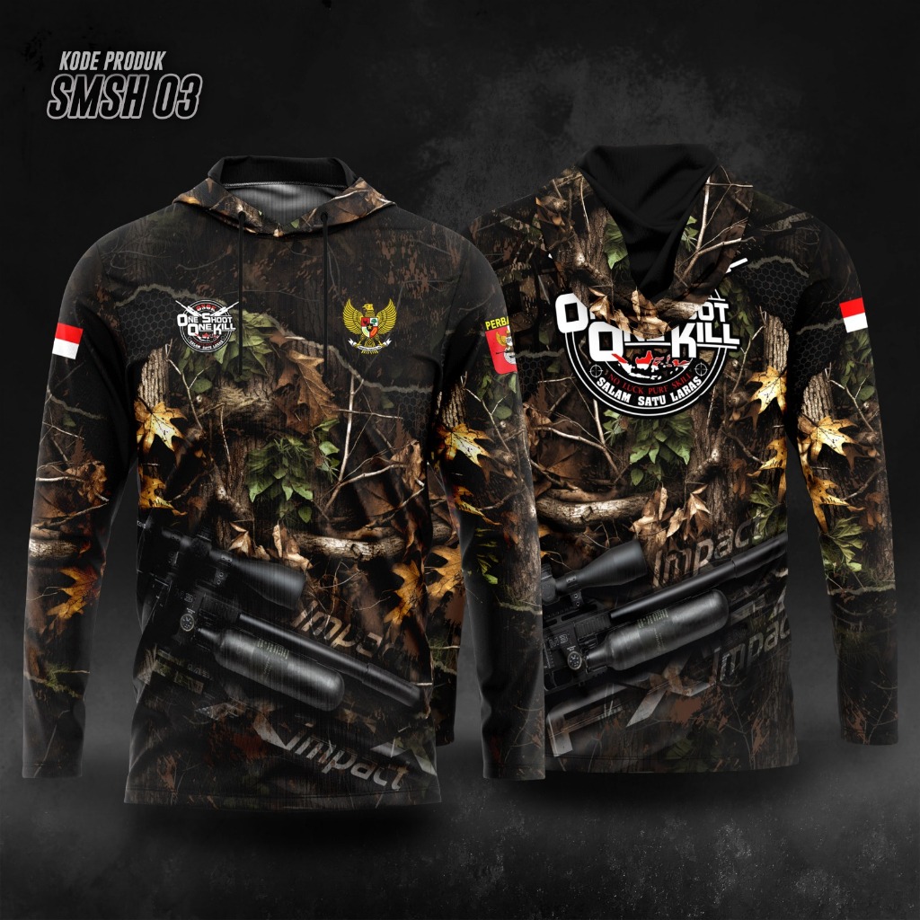 BAJU CAMO HUTNING / HOODIE SHIRT OSOK / BAJU HOODIE CAMO MOTIF PERBAKIN ONE SHOOT ONE KILL / JERSEY OSOK COSTUM FULLPRIN