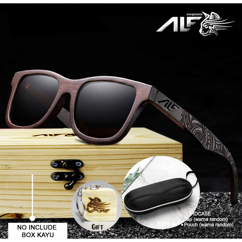 PROMO | Kacamata Hitam Polarized ALF Kayu coklat Elegant Anti Mainstream