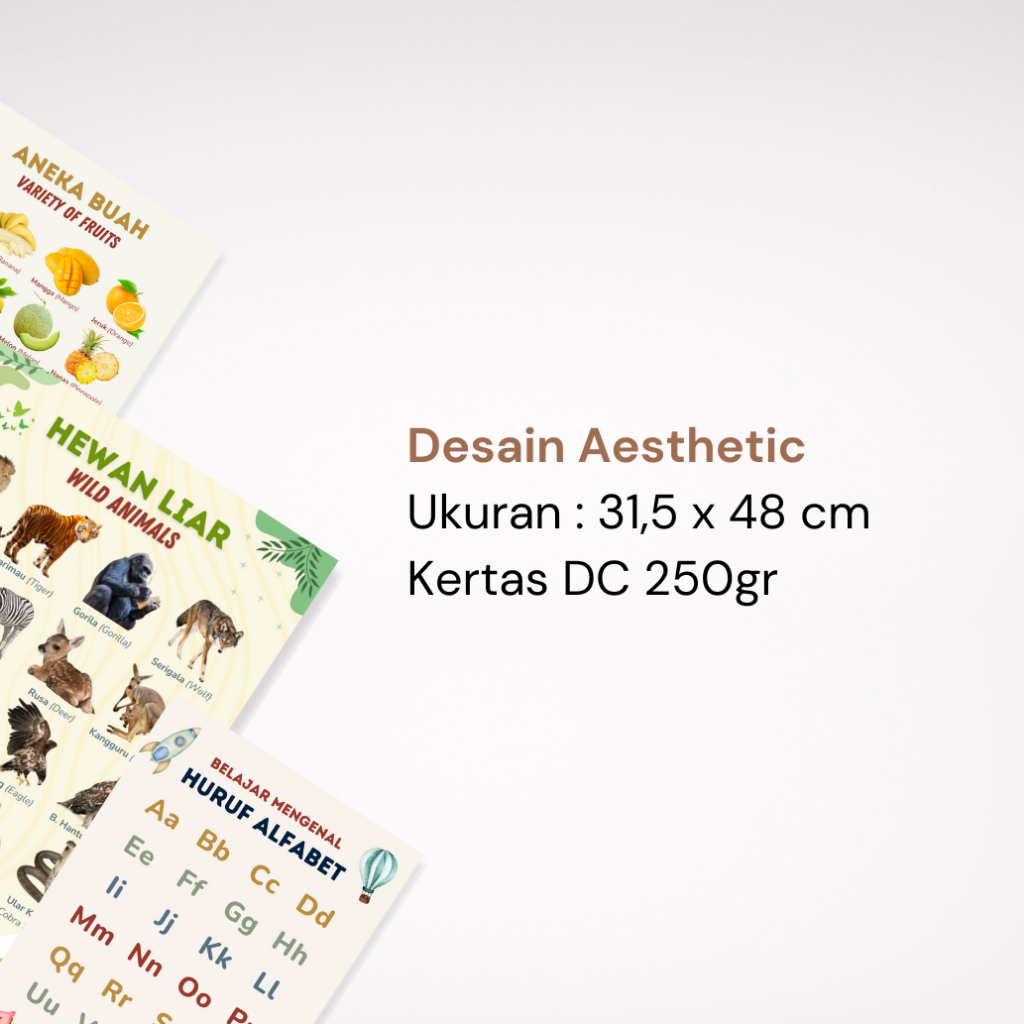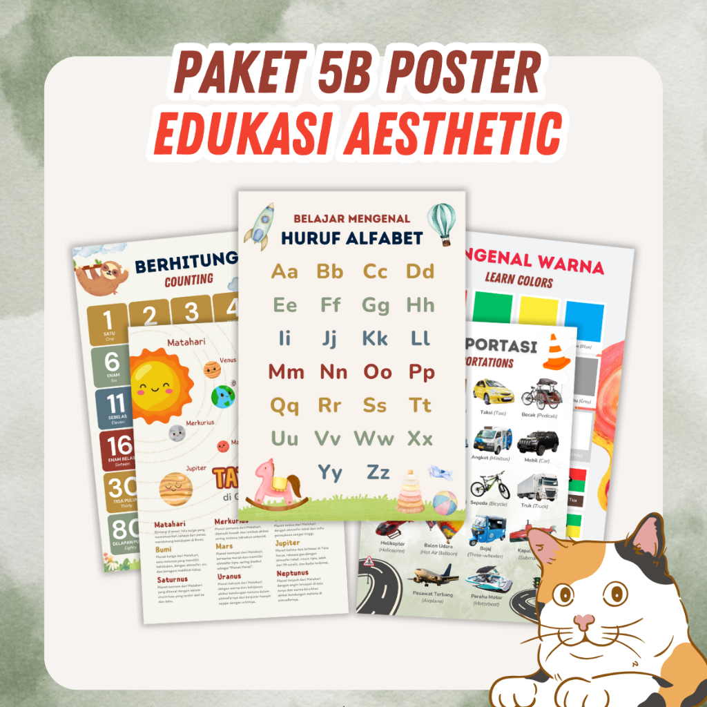Paket 5 Poster Edukasi Anak – Poster Angka, Poster Tata Surya, Poster Hewan Liar, Poster Hewan Laut, Poster Transportasi
