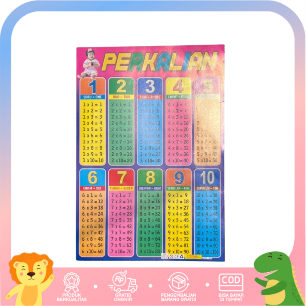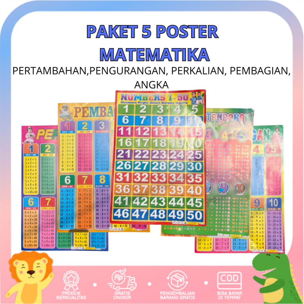 Paket 5 Poster Dinding Edukasi Anak Belajar Gambar Matematika Perkalian Pembagian Pertambahan
