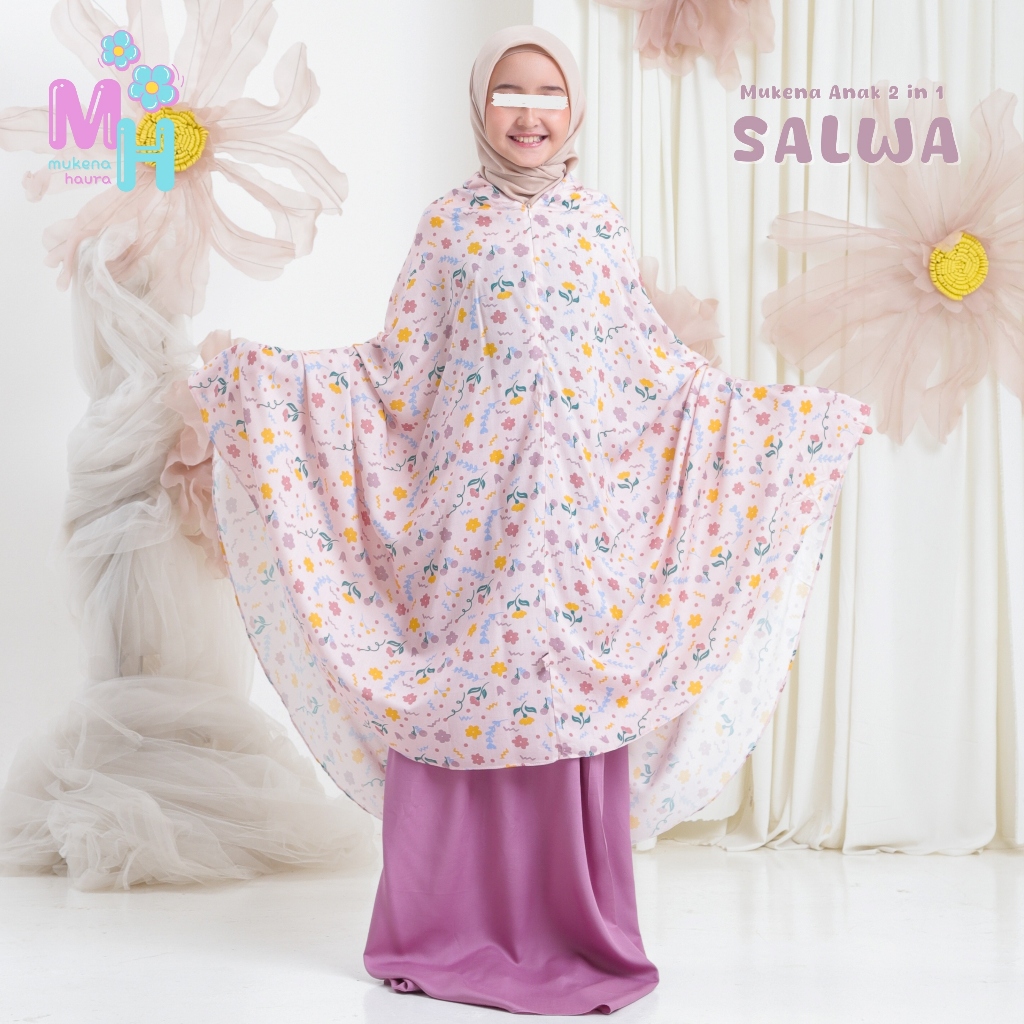 Mukena Anak Rayon Motif Salwa 2 In 1 Resleting Dagu