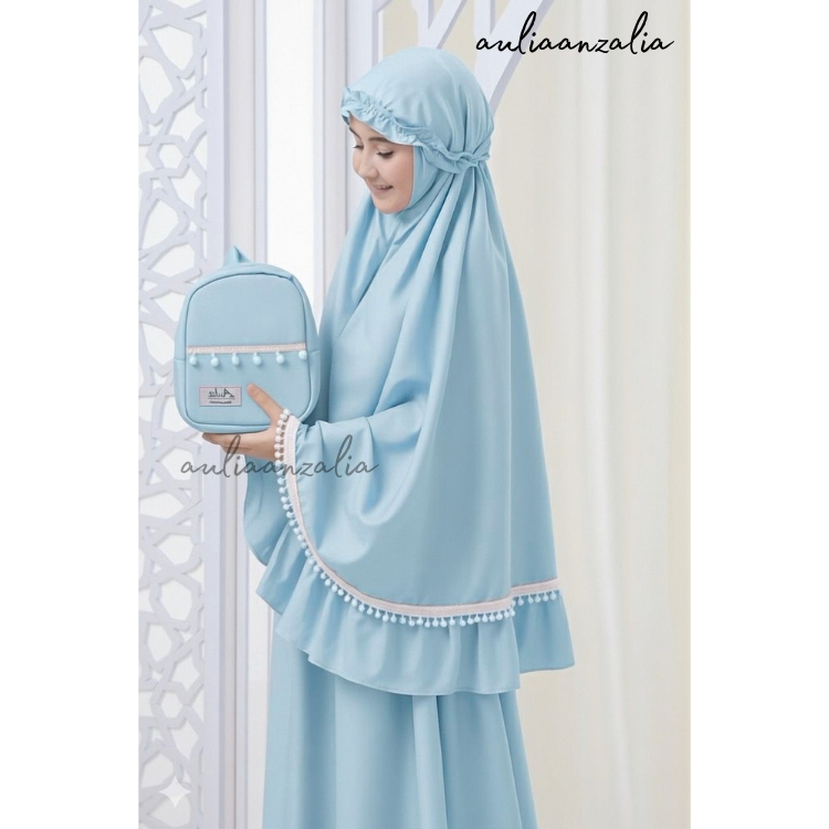 Mukena Anak Lucu Tas Ransel Umur 2–12 Tahun Katun Premium Pompom