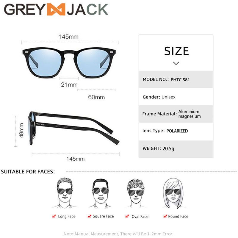 Grey Jack Kacamata Sunglasses Polarized Photocromic Alumunium Magnesium Anti Silau/Anti UV Fashion Pria dan Wanita Model Kotak New 581