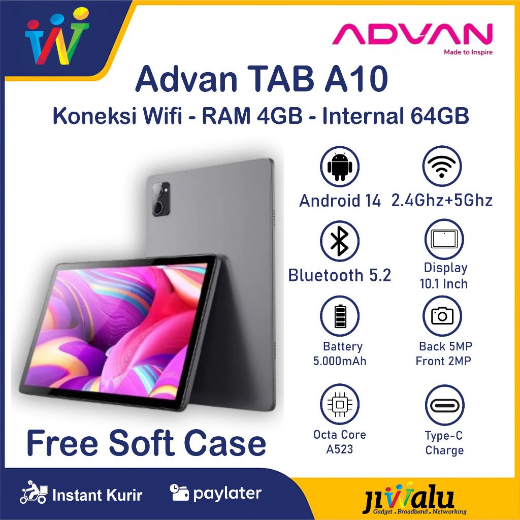 Advan TAB A10 Wifi 4GB/64GB 10.1”IPS Screen Tablet Android 14 5000mAh