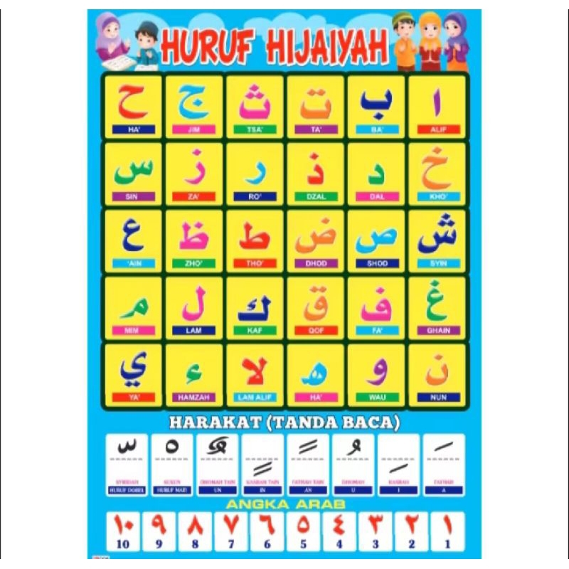 [Paket 6 Lembar ] Poster Edukasi Anak, Hijaiyah/huruf lepas/Angka/Buah/Sayur/Hewan